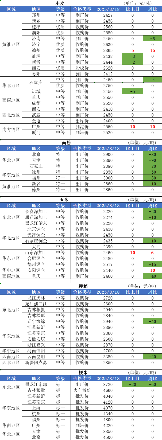 1、8月18日,小麥市場價格延續弱勢震蕩,零星企業調整收購價格。目前粉企對小麥需求偏弱,小麥供應充足,托市實際收購量對市場影響有限,更多體現在情緒引導,市場估計托市小麥收購量約800萬噸左右。