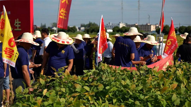 8月25日,農業農村部《種業振興行動方案》實施三周年之際,騰飛種業在石首市召開“高質量發展研討暨徽黃6號觀摩會”。來自長江流域的百余位核心經銷商、種植大戶與行業專家走進示范田,共話“優良品種+配套技術”如何在大豆產業新一輪擴面提單行動中落地生金。