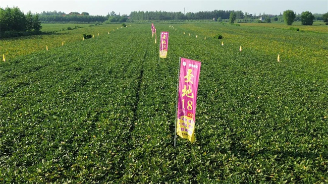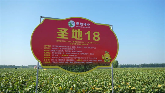 除產量優勢外,圣地18還具備耐高溫、抗花葉病毒病3號和7號株系、抗倒伏等特性,適宜長江流域夏播,生育期約96天。其籽粒大而飽滿,百粒重24.6—26克,粗蛋白含量高達46%,落葉性好、熟期一致,且適合機械化收割,充分契合當前農業現代化發展的需求。