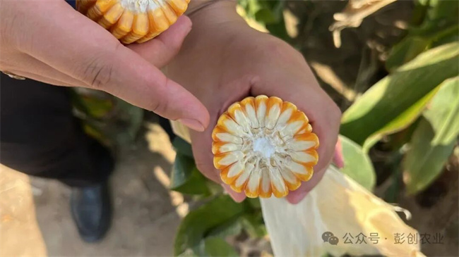 會議的核心環節——田間觀摩現場,黃金糧MY73 的優異表現讓到場人員眼前一亮。據介紹,該觀摩地塊于4月20日左右播種,種植密度達到 5800株,株高僅2米3,株型緊湊,通風透光性良好。走進田間,整齊劃一的果穗格外引人注目,不僅大小均勻一致,而且籽粒飽滿,實現了一粒封頂,品質極佳。更令人驚嘆的是,盡管玉米已完(wan)全成(cheng)熟,但莖稈依舊(jiu)從(cong)上(shang)到下保持青枝綠葉,抗倒伏(fu)、抗病蟲害(hai)等各方面抗性(xing)得(de)到了完(wan)美體現,與今年春播期間受(shou)高溫干旱影響而表現平平的其他品種形成(cheng)了鮮明對比。