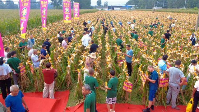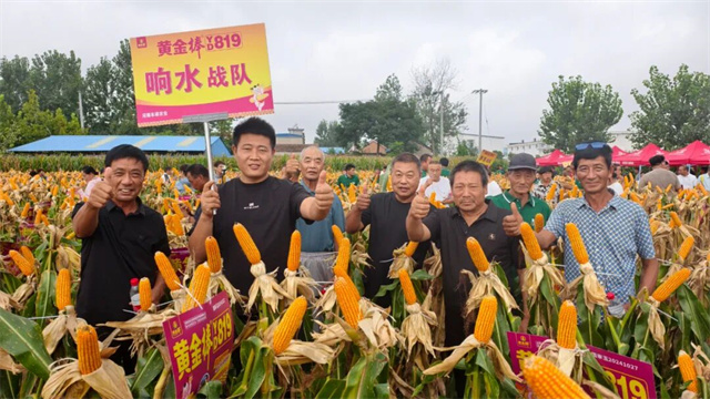 9月3日,安徽泗縣,一場別開生面的玉米觀摩會吸引了千余名經銷商與種植大戶。大家把一塊示范田圍得水泄不通:有人踮腳,有人蹲地,只為看清同一行字——黃金棒YD819,災年滿意答卷。