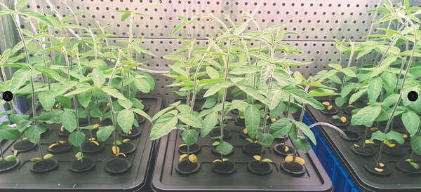 東北農業大學作物信息實驗室里的大豆苗。記者 周靜 攝