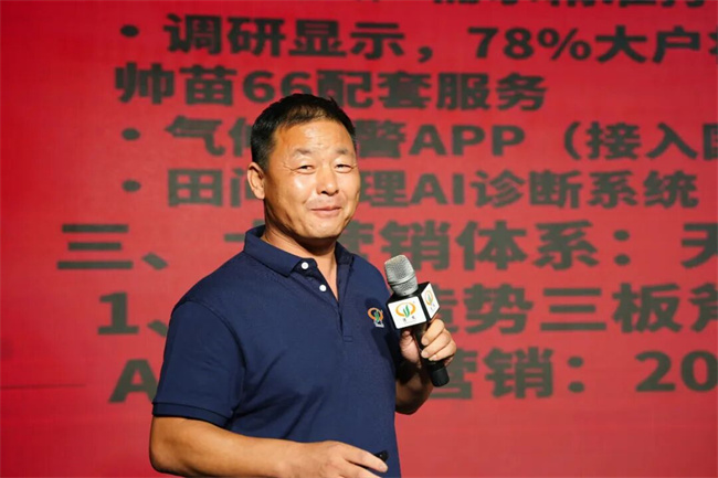 大會上,德發種業董事長董峰發表講話,感謝合作伙伴長期以來的支持。他強調,公司將繼續以自育品種為基礎,聯合科研力量,持續推出突破性新品種,提高市場競爭力。帥苗66作為戰略核心品種,凝聚了全行業的信心與農民的豐收期盼。