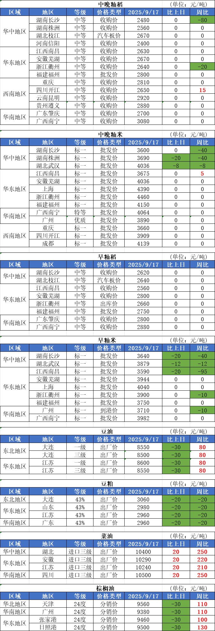3、本(ben)周,湖北省中(zhong)晚秈稻收購(gou)均價2595元(yuan)/噸(dun),較上周下(xia)跌(die)12元(yuan)/噸(dun);早秈稻收購(gou)價2630元(yuan)/噸(dun),周環(huan)比下(xia)跌(die)5元(yuan)/噸(dun)。當前,湖北省范圍內新稻長勢總(zong)體良(liang)好,預計9月中(zhong)下(xia)旬(xun)全面進入收獲期。