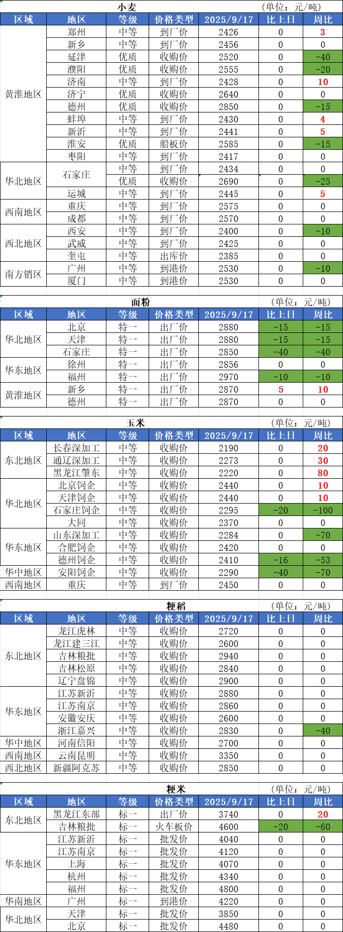 1、9月17日,小麥加工(gong)企業(ye)收購價(jia)(jia)格整體延續漲勢,漲幅在2-5厘。在開學(xue)備(bei)貨季、集團(tuan)采購增加的提(ti)振下,面粉價(jia)(jia)格及(ji)走貨情(qing)況(kuang)均(jun)出現明顯好轉(zhuan),加上(shang)“雙節”臨(lin)近,下游需求有(you)增無減(jian)。