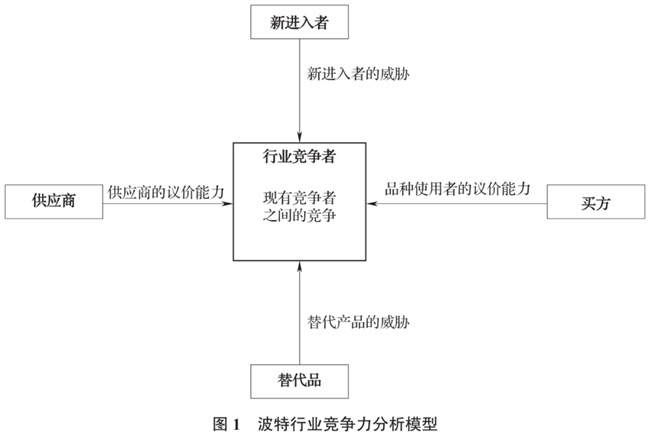 波特采用五大競爭力模型,即新進入者的威脅、替代產品的威脅、品種使用者的議價能力、供應商的議價能力以及現有競爭者之間的競爭來分析行業結構(圖1)。