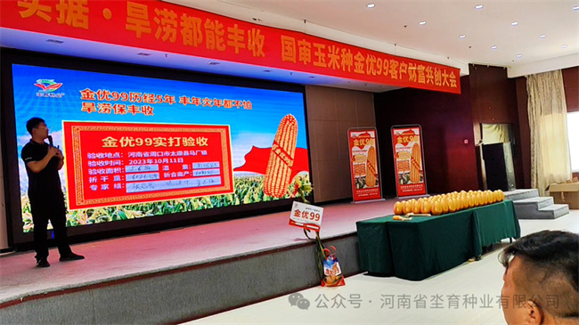 坔育種業執行經理汪凡在會上系統介紹了“金優99”的品種優勢。多年多點的區域試驗數據顯示,該品種不僅在抗病、抗倒等方面表現優異,更在不同生態區都能保持高產穩產的特性。他強調,公司將堅持“優良品種+優質服務+配套技術”的渠道賦能模式,助力經銷商實現可持續發展,也為農戶提供穩收增收的保障。