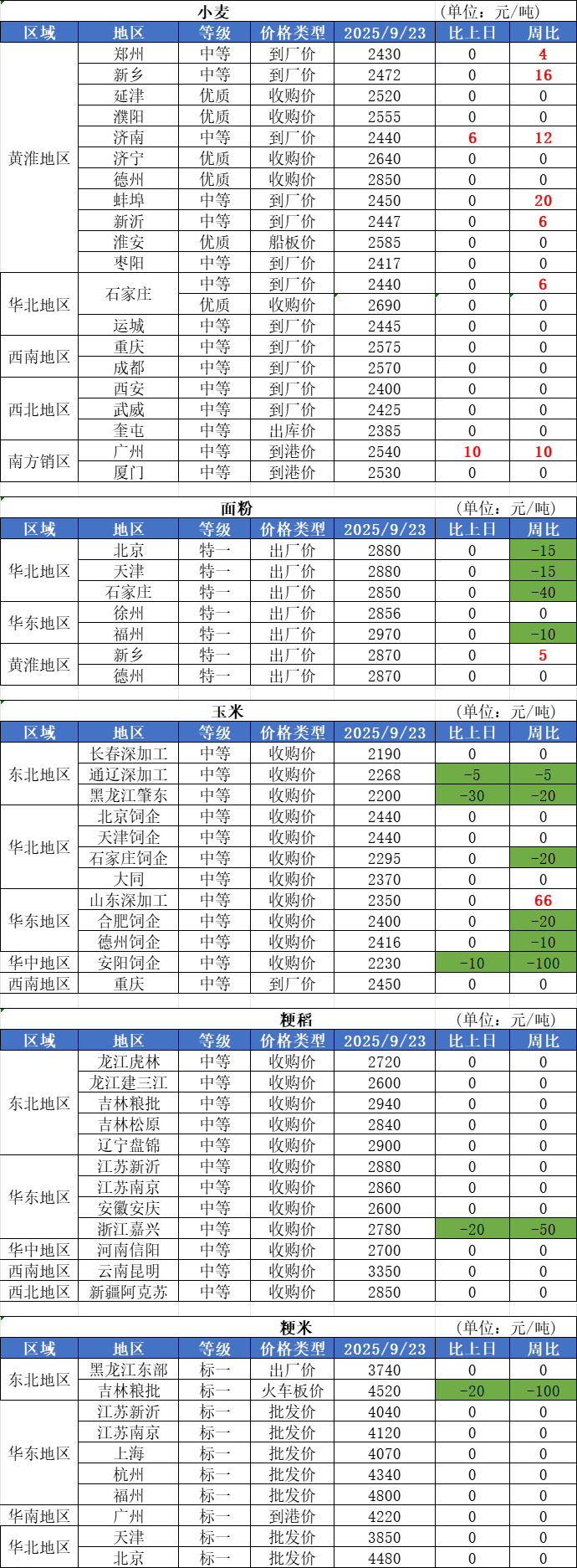 1、9月23日,小麥市(shi)場(chang)價格(ge)整體穩中偏強,山(shan)東、河北、安徽(hui)、陜西等局部(bu)終端企(qi)業上調收購價,漲幅在2-5厘(li)。小(xiao)麥托(tuo)市(shi)收購距結束(shu)還有一周(zhou)時(shi)間,市(shi)場(chang)預(yu)估最終累計小(xiao)麥托(tuo)市(shi)收購量為1500-1700萬噸。