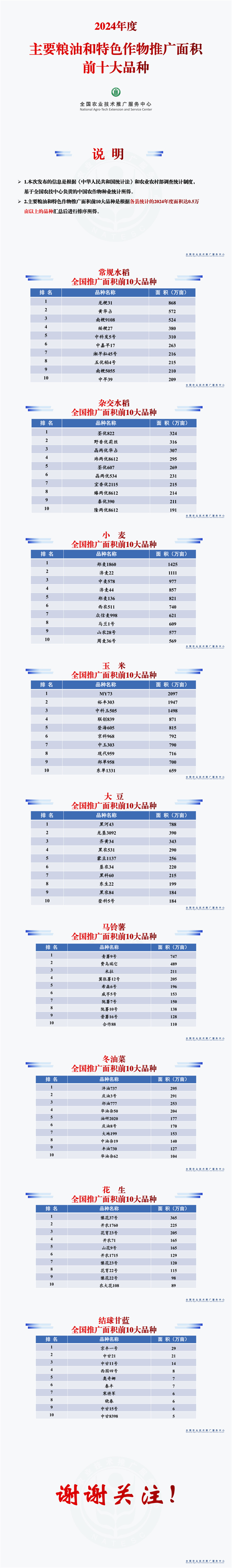 • 2024年度主要糧油和特色作物推廣面積前十大品種