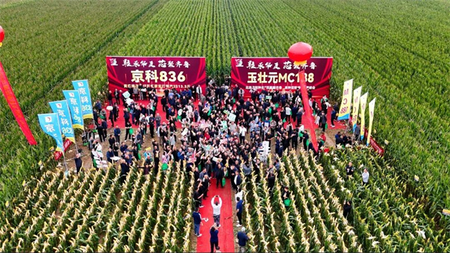 會議伊始,參會嘉賓走進田(tian)間(jian),實地觀摩了(le)北京(jing)龍耘種(zhong)業京(jing)科836與MC188核心品種(zhong)。在2025年氣(qi)候多變、高(gao)溫干旱急轉陰(yin)雨寡照的嚴峻(jun)考驗下,這兩大品種(zhong)憑借穩定性與適應性,依舊(jiu)表(biao)現優異(yi),贏得一(yi)致好(hao)評。