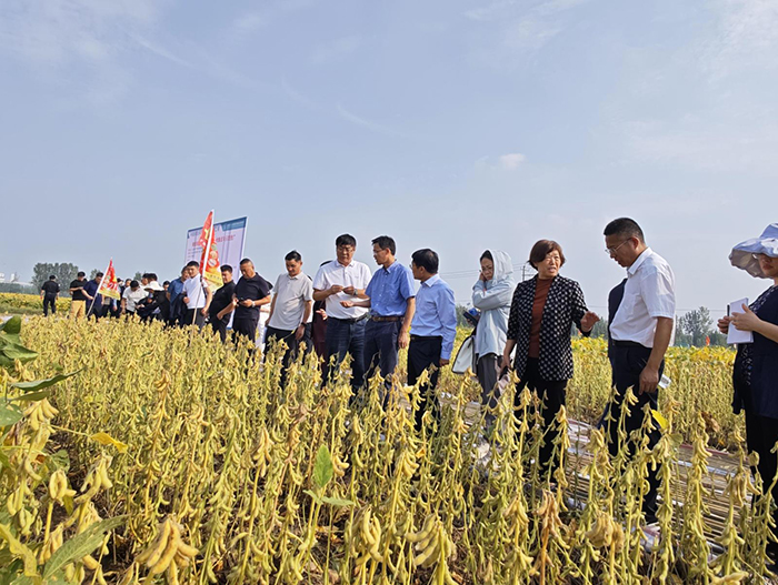 與會專家實地觀摩了嘉祥縣郭莊村“中黃219”千畝示范方中該品種的田間長勢、結莢情況以及搭配免耕覆秸精播技術等高產栽培機械化生產技術應用成效,聽取了大豆領域相關專家圍繞我國大豆產業發展現狀、大豆單產提升關鍵技術、“中黃219”品種選育與產業化應用等方面作的專題報告。與會專家認為,“中黃219”作為高油高產大豆,在群體整齊度、抗倒性、結實率等方面表現出較好的豐產潛力,該品種的推廣應用將有力促進黃淮海地區大豆大面積單產提升與產業結構優化。