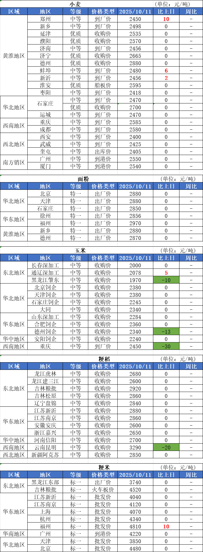 1、10月11日,國內小麥市場價格重心繼續上移,漲幅在3-5厘。目前市場看漲情緒濃厚,例如延津克明面粉報價1.25元/斤;遂平五得利報價1.25元/斤;思豐面業報價1.26元/斤。