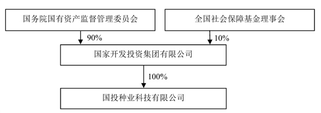 國投種業科技有限公司成立于2023年,注冊資本40億元,注冊地址位于海南三亞。目前,國務院國資委持有國投集團90%的股權,國投集團持有國投種業100%股權,國投集團為國投種業的控股股東,國務院國資委為國投種業的實際控制人。自2023年9月26日成立至今,國投種業的控股股東及實際控制人未發生變化。