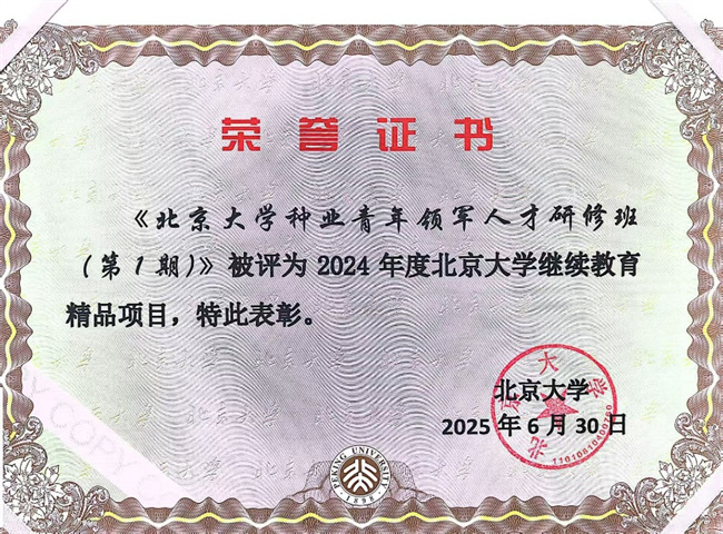 首期研修班的成功舉辦在中國種子行業產生了廣泛而深遠的影響,為國家種業政策改革、前沿技術產業化應用以及企業間合作搭建了全新平臺。項目培養了第一批“北大種業人”,為民族種業發展做出了北大貢獻,獲得了行業專家和企業家們的一致好評。此次獲評北京大學繼續教育精品項目,進一步夯實了“北大種業人”的品牌內涵,展現了北京大學在服務國家重大戰略需求方面的責任擔當。