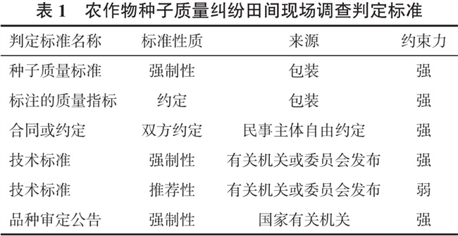 鑒定專家組出具鑒定結論可以參考種子包裝中列明的種子質量標準、雙方的合同約定、有關技術標準、品種審定公告關鍵性狀描述等內容作為判斷的重要標準(表1)。