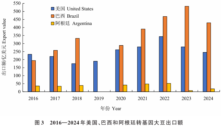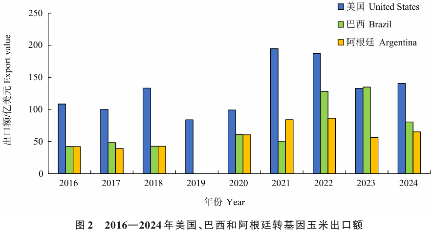 巴西、阿根廷和美國是轉基因玉米和大豆的主要出口國。2022年,巴西的轉基因玉米主要出口到伊朗、西班牙和日本,而其轉基因大豆超過90%出口至中國,出口額高達318.49億美元,其轉基因玉米和大豆加工產品也出口到歐盟和亞洲其他國家。