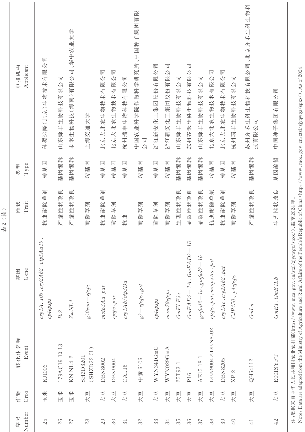 2024年3月19日,農業農村部公示了第五屆國家農作物品種審定委員會第六次品種審定會議初審通過的轉基因玉米、大豆品種及相關信息,其中包括27個轉基因玉米和3個轉基因大豆品種。