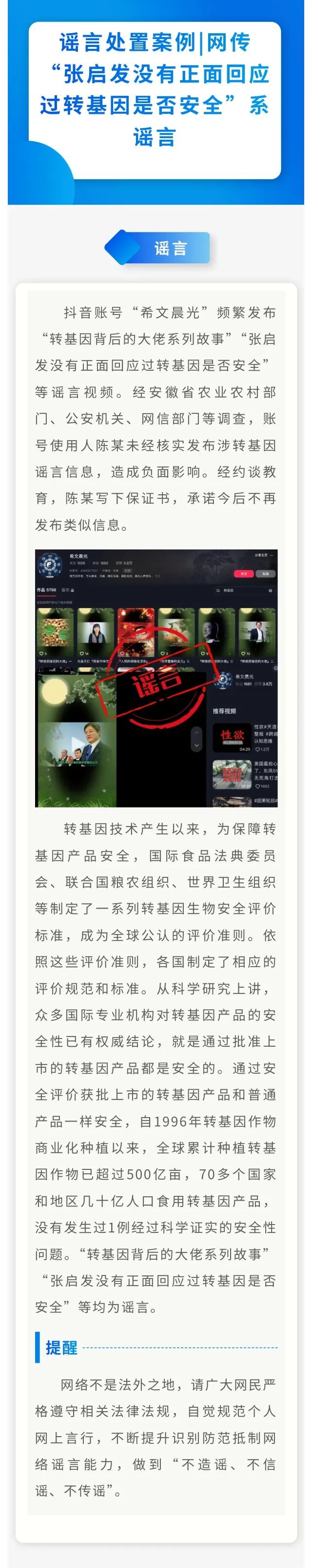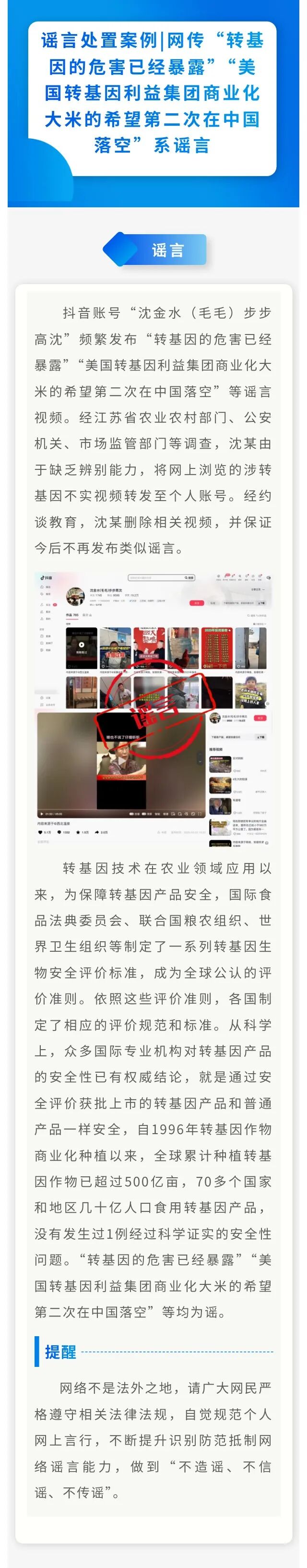 • 科學認識轉基因!一批涉轉謠言被罰