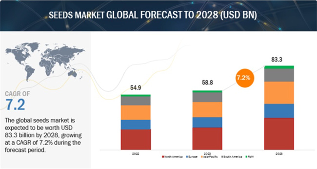 據MarketsandMarkets預測,全球種子市場的規模預計將從2023年的588億美元增長至2028年的833億美元,預測期內復合年增長率(CAGR)為7.2%。隨著全球人口持續增長,糧食需求不斷攀升,推動了對改良種子品種的需求,進而提高作物產量、生產力和抗逆性。高品質種子,尤其是具有抗病、高產和優質營養等優良性狀的品種,正逐步成為市場的主流。而技術進步和基因工程則在加速轉基因種子的研發與應用。