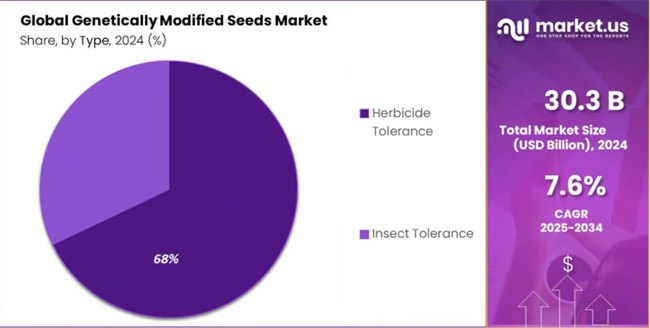 耐除草劑種子已成為全球增長最快的細分領域之一。2024年,其在轉基因種子市場中占據超過67.8%的份額,確立了主導地位。谷物類作物在除草劑市場中占比達44.3%,并預計在2025–2030年間以5.3%的年均增長率持續擴展。這一增長主要源于玉米、大豆、小麥和水稻的廣泛種植——這些作物構成了全球熱量供應的基礎。