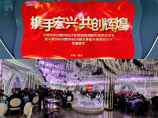 11月3日晚,興輝908/興輝908GX東四省現場脫粒測產觀摩品鑒會暨興輝908興輝/908GX糧王爭霸大賽額頒獎儀式歡迎晚宴在德惠市龍云閣大酒店拉開序幕。宏興高科農業徐健總經理發表了熱情洋溢的致辭,對遠道而來的經銷商同仁、種植戶朋友們表示誠摯的歡迎,并對大家長期以來對興輝908/興輝908GX的信任與支持表示衷心感謝。晚宴現場歡聲笑語,新老朋友舉杯暢敘,在輕松愉快的氛圍中,大家交流種植心得,展望合作未來,為后續活動的順利舉辦奠定了良好的基礎。