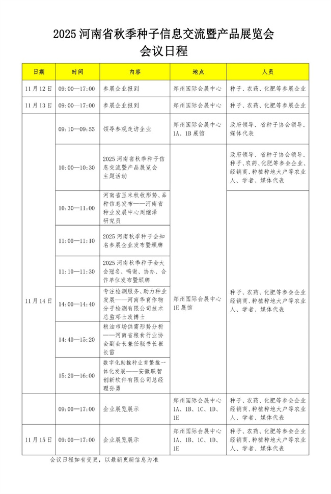 • 日程安排發布!2025河南秋季種子會將于11月14日