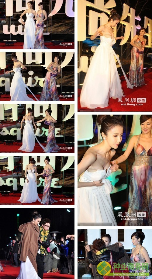 孫菲菲紅毯上被主持人踩裙擺 裙子脫落