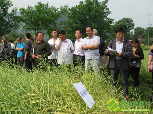 與會人員驅車前往大安鎮烈金壩村七組,對德油雜10號、榮華油4號、圣光302等19個油菜展示品種進行了實地觀摩,對其豐產性、抗逆性、熟期及綜合表現進行了現場評價,認為南油12、龍庭1號、圣光302等品種長勢強、分枝多、綜合性狀好、增產潛力大,得到了與會者一致肯定,可望在我縣大面積推廣種植。
