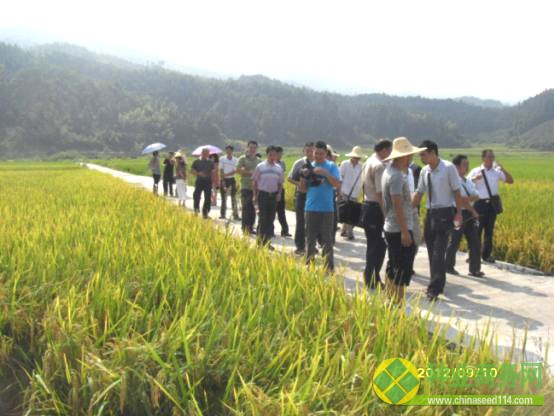 代表們現場觀摩了優質稻新品種示范片和水稻新品種展示點,今年優質稻新品種示范片面積1012畝,其中核心示范片205畝,示范甬優9號、天優華占兩個組合。新品種展示點共展示川優2189、泰優2098、贛優066、川優410、谷優419、川優346、贛優496、特優116、谷優066、特優066、谷優769、熱粳優35、納科2號、深優979、Y兩優646、兩優996、福兩優366、甬優15等18個組合。