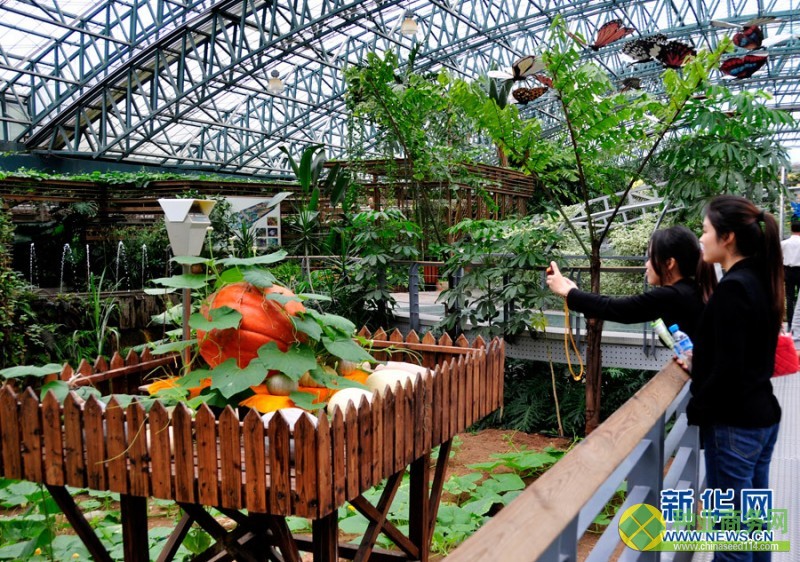 當日,深圳東部華僑城茶溪谷培植的太空巨型南瓜吸引了眾多游客。據介紹,太空船把南瓜種子帶上太空,這些種子在宇宙里經過綜合射線的作用,回到地面后,科研人員利用溫室效應,經過三個月的種植,長出150公斤的大南瓜,在生長繁殖期高峰時,南瓜每天能增重5公斤。新華社發 高殿華攝