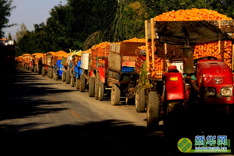 9月20日,當許多人都在歡度中秋小長假的時候,甘肅張掖甘州區明永鄉的村民們正在忙著收獲制種玉米。交售玉米的車輛排起了長長的車隊,晾曬場上車來車往,一派豐收的繁忙景象。今年,該區被國家農業部認定為首批國家級種子生產基地,目前全區55萬畝制種玉米已全面進入收獲期,預計總產量2.5億公斤。陳禮 攝