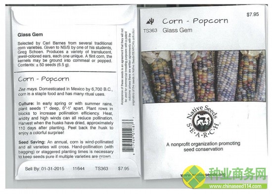 在該組織網頁上,一袋種子賣7.95美元,袋子背面附有種植指導。