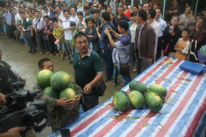 瓦崗鎮田畈村的葉群生等眾多瓜農冒雨抱著自家的大西瓜早早來到現場,他準備報名參加瓜王比賽。經過激烈角逐,評出了西瓜綜合品質獎、單瓜重量瓜王獎、新品種獎等獎項。西瓜節上,舉行了妙趣橫生的抱西瓜、吃西瓜、猜西瓜重量等比賽,吸引了確山縣內外兩萬余人參加西瓜節,現場氣氛熱烈,歡呼聲喝彩聲此起彼伏。記者獲悉,本次“科邦”杯西瓜大賽由駐馬店市農業推廣協會主辦,駐馬店市電視臺、確山縣瓦崗鎮政府聯合承辦 ,江蘇科邦生太肥有限公司、確山縣艷芳農資有限公司冠名協辦。駐馬店市農業局副局長馬建、市科技協會紀檢組長張冠楠、市民政局副局長王彥林、市電視臺副臺長肖金喜、《天中晚報》總編輯鄭剛、市蔬菜辦公室主任孔亞麗、市農科院園藝所所長姜俊、市農業推廣協會會長許時倫,確山縣副縣長張杰、縣農業局局長李德榮、縣武裝部部長曹祥軍、縣宣傳副部長王鐘明 、瓦崗鎮書記馬中山、鎮長王雙全,科邦公司河南大區經理胡可、確山縣艷芳農資總經理閆芳等領導專家出席了西瓜大賽現場活動。