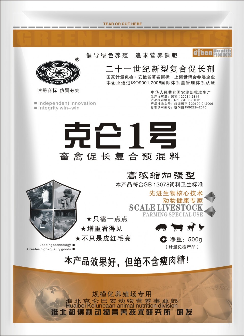 克侖巴安采用國外進口最新高科原粉國內分裝組合提高生長激素的基礎上著重協調營養物質的運轉和再分配,加速蛋白質的合成,達到提高肉豬的免疫力和抵抗力,迅速改良體形,促進生長速度,提高飼料能量的利用率的效果。從經濟效益來看,可明顯提高增重率和飼料報酬,同時因增加瘦肉率而使其食用價值和商品價值提高,因而增加養豬的效益。本品不含人畜共用的抗生素及國家違禁藥物,且其主要成分均為天然活性物質,因此尿檢無興奮劑陽性和假陽性,具有無殘留,無毒副作用的特點,是安全可靠、綠色環保的飼料添加劑。產品配方經數百次的實驗現已正式投放市場,在促進豬的生長速度,提高瘦肉率,改良體形,提高飼料報酬等方面取得重大突破。產品經廣東、上海、浙江、湖南、河南等一些大型豬場大面積使用經濟效益十分顯著。本品具有同瘦肉精和萊克多巴胺相同的作用和效果(經過大量試驗驗證檢測為陰性),提高飼料報酬和瘦肉率之功效,可以明顯提高豬的平均增重量.。化學結構穩定, 不會氧化,質量穩定,使用安全,無副作用,無藥物殘留。