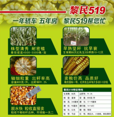 粒收王(wang)——黎(li)民519,不用晾曬的玉米,種地(di)大戶的福音.中國農資聯盟.2015-05-24[引用日期2015-05-26]. //www.nongzi100.com/thread-49843-1-1.html
