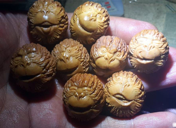 近年來,廣大文玩核友、佛界人士、收藏愛好者,把玩、收藏猴頭核桃工藝品的熱情不斷持續升溫。今年恰逢農歷丙申猴年,更激起了一波追捧猴頭核桃的熱潮。猴年伊始,許多愛好者在微信圈曬寶,為自己淘來的一批、一串甚或僅僅一粒猴頭核桃精品,而竊喜、而顯擺。猴年喜得象征著聰明、活潑、機敏、忠貞、勇敢的瑞猴佛珠,屬猴者似得一同伴,自然是吉祥之物;不屬猴者得之,也可驅邪護身,希冀騰達、安康。