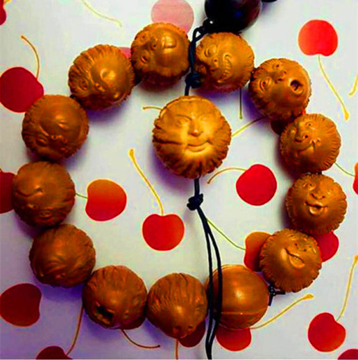 5. 雕刻品用途廣泛,“玩法”多樣。業(ye)內(nei)(nei)人士通(tong)常把核(he)(he)雕(diao)品(pin)(pin)的(de)(de)(de)(de)玩(wan)法分為(wei)(wei)三(san)種(有人稱為(wei)(wei)三(san)種制式),即(ji)(ji)單(dan)個(ge)、成(cheng)對(dui)和串(chuan)活。單(dan)個(ge)和成(cheng)對(dui),其實就是大家常說的(de)(de)(de)(de)掛(gua)件(jian)(jian)和擺件(jian)(jian);而串(chuan)活則(ze)指的(de)(de)(de)(de)是作(zuo)為(wei)(wei)串(chuan)珠(zhu)(zhu)(念(nian)珠(zhu)(zhu)),制成(cheng)手(shou)(shou)串(chuan)、項串(chuan)等(deng)。對(dui)于(yu)果個(ge)較(jiao)大、所雕(diao)題材(cai)內(nei)(nei)容比較(jiao)完整的(de)(de)(de)(de)美國猴(hou)頭核(he)(he)桃(tao)雕(diao)刻品(pin)(pin),可(ke)(ke)用(yong)作(zuo)掛(gua)件(jian)(jian)或(huo)擺件(jian)(jian),例如作(zuo)為(wei)(wei)手(shou)(shou)機(ji)墜、手(shou)(shou)包墜、扇子墜、汽車內(nei)(nei)掛(gua)等(deng),或(huo)擺于(yu)案頭欣賞、握于(yu)手(shou)(shou)中把玩(wan)。對(dui)于(yu)果個(ge)較(jiao)小、所雕(diao)題材(cai)相對(dui)簡(jian)單(dan)的(de)(de)(de)(de)美國猴(hou)頭核(he)(he)桃(tao)雕(diao)刻品(pin)(pin)(通(tong)常是猴(hou)頭),當然是制作(zuo)手(shou)(shou)串(chuan)、長串(chuan)的(de)(de)(de)(de)首選。需要說明的(de)(de)(de)(de)是,除(chu)了雕(diao)刻外(wai),對(dui)于(yu)果形圓(yuan)、果個(ge)小、果殼表面紋路美觀的(de)(de)(de)(de)美國猴(hou)頭核(he)(he)桃(tao),就沒有必要雕(diao)刻了,直接用(yong)素珠(zhu)(zhu)穿串(chuan),即(ji)(ji)可(ke)(ke)成(cheng)為(wei)(wei)上(shang)品(pin)(pin);磨光珠(zhu)(zhu)穿串(chuan)也是一種不錯的(de)(de)(de)(de)選擇。
