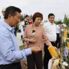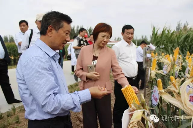 農業部種子管理局局長張延秋(左一)、副局長吳曉玲(左二),全國農業技術推廣服務中心黨委副書記劉信(左三)在商河種植展示示范場了解玉米新品種生長情況。