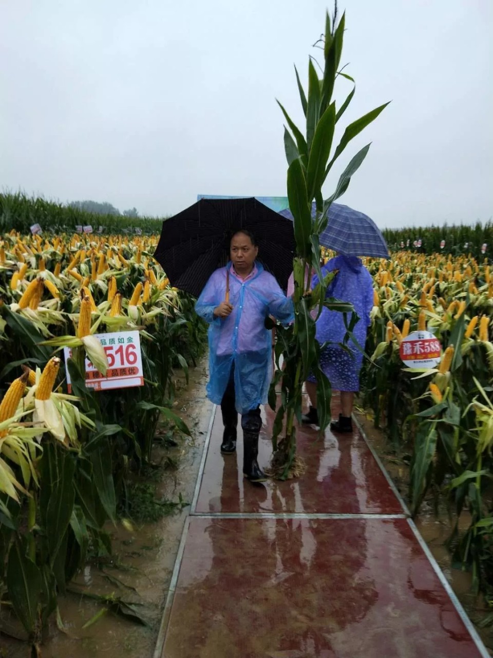 來自魯西南的代理商、零售商,陸續有150余人來到觀摩現場。他們冒雨到田間觀摩、品評、拍照留念,并對豫禾516、豫禾588贊不絕口。削頭剝開的豫禾516、豫禾588經過雨水洗禮,好像貴妃出浴,顯得格外大方、精神。