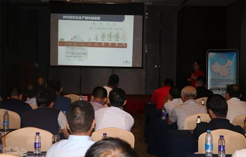 龍燈種衣劑產品推介會和戰略合作客戶溝通會現場,龍燈公司技術人員現場講解公司產品的相關情況