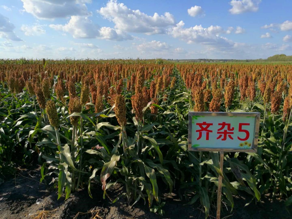 ●早熟齊雜5 生育期為90-95天左右,需活動積溫1900-2050℃,成株高1.1米,9片葉片,長筒型穗,籽粒紅色,粒特大,穗緊不落粒,單穗重一般65克左右,不倒伏,極其適合機械收割。該品種淀粉和單寧含量特高,極其適合釀酒。該品種為耐密性品種,畝保苗15000株左右,一般畝產1100斤。咨詢電話18724616608