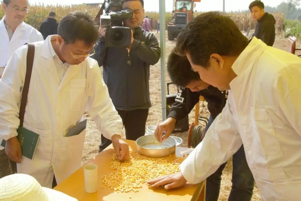 隨后,河南農業大學湯繼華教授宣布:專家組依照農業農村部玉米高產創建驗收辦法,豐德存玉10號平均畝產910.8公斤,創造黃淮海地區籽粒機收高產記錄。