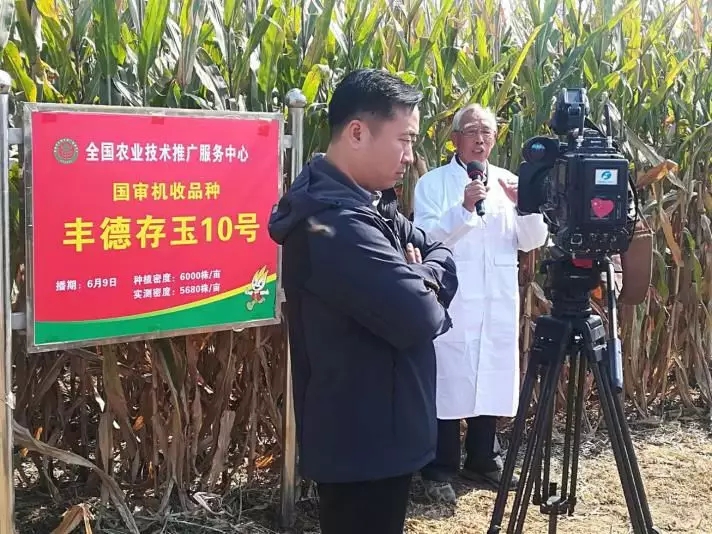 隨后,河南農業大學湯繼華教授宣布:專家組依照農業農村部玉米高產創建驗收辦法,豐德存玉10號平均畝產910.8公斤,創造黃淮海地區籽粒機收高產記錄。