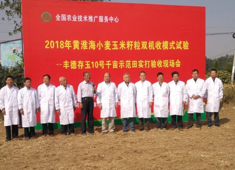 隨后,河南農業大學湯繼華教授宣布:專家組依照農業農村部玉米高產創建驗收辦法,豐德存玉10號平均畝產910.8公斤,創造黃淮海地區籽粒機收高產記錄。