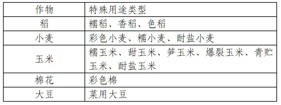 山東省農作物品種審定委員會適時確定公布山東省特殊用途品種類型。目前確定的山東省主要農作物特殊用途品種類型目錄見下表。自有品種屬于特殊用途品種的,可以自行進行品種試驗,提交試驗方案,經審核確認的試驗納入省級品種試驗統一管理。特殊用途品種試驗要科學確定對照品種,試驗點數不少于5個,分布于三個以上市級行政區,其它要求參照省級品種試驗管理辦法。