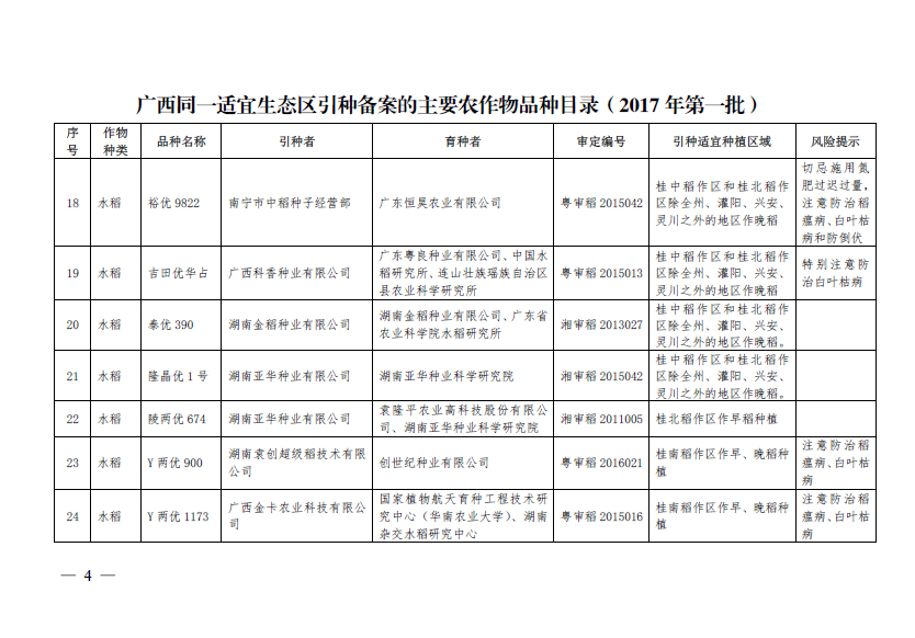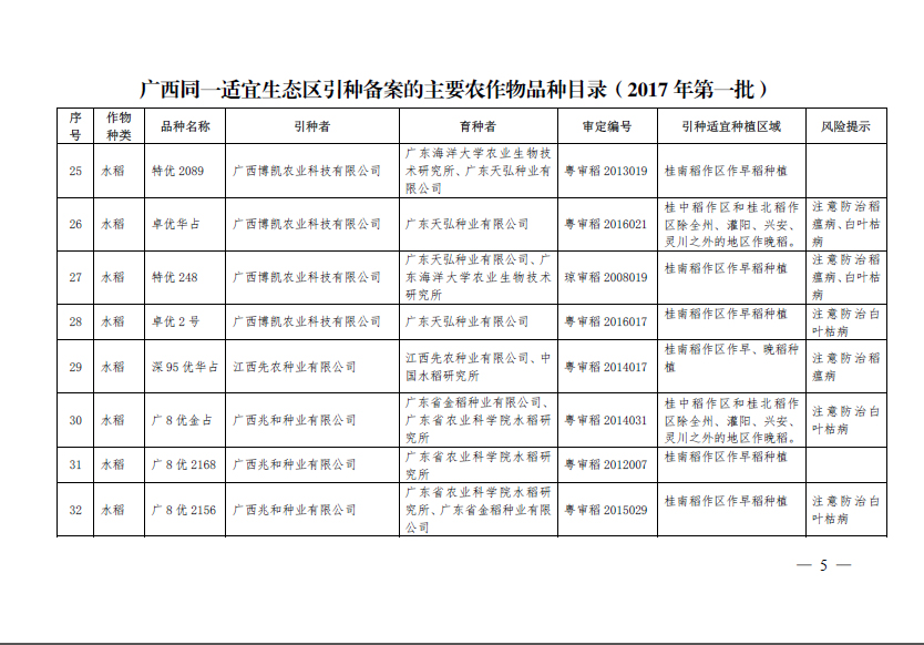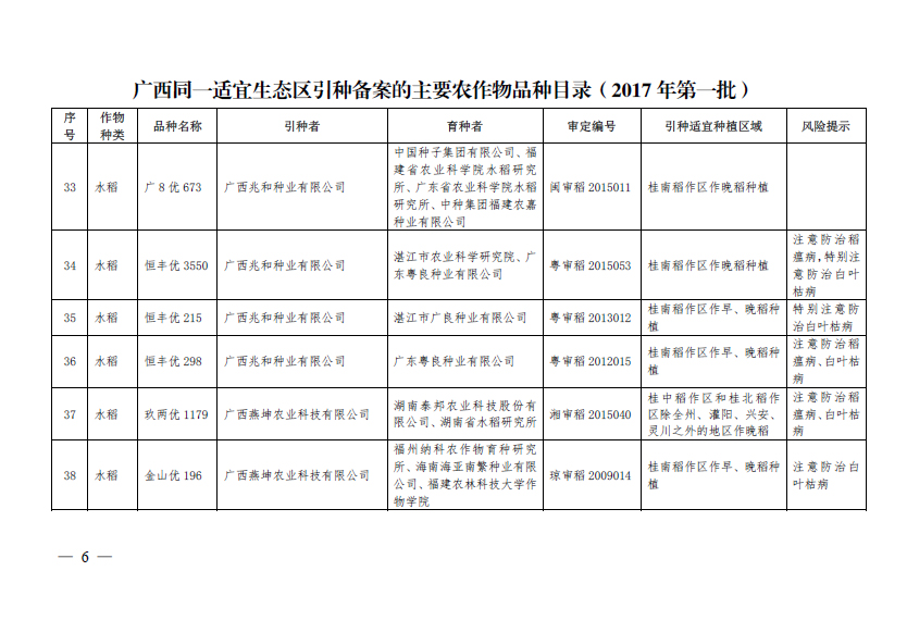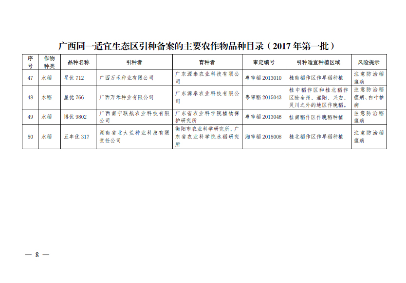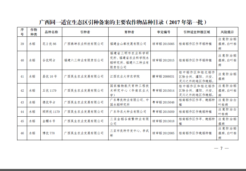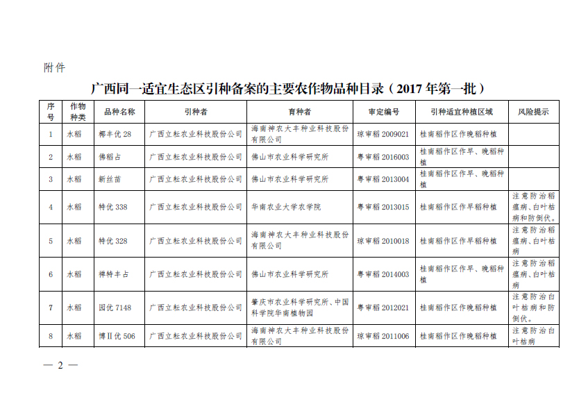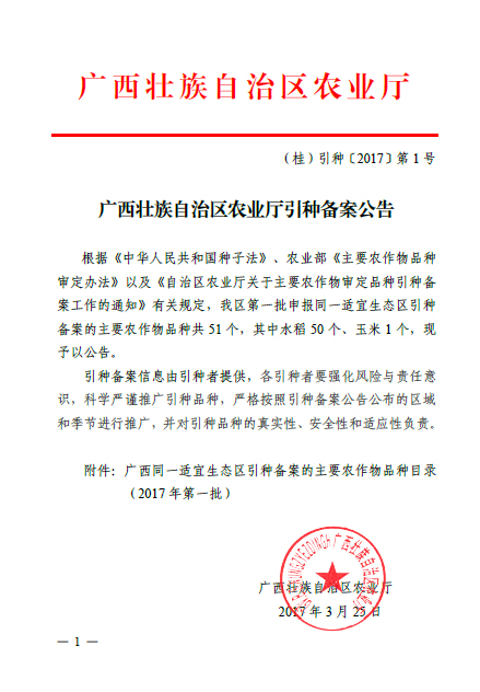 廣西壯族自治區農業廳引種備案公告(第一批)