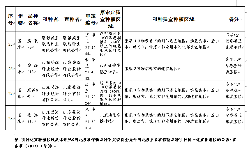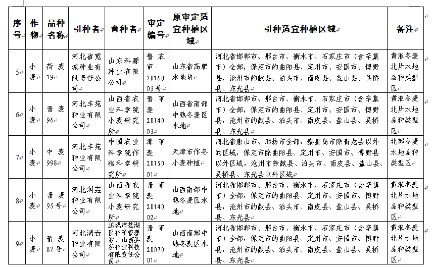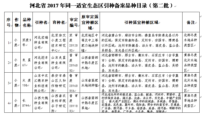 關于2017年主要農作物審定品種同一適宜生態區引種備案公告
