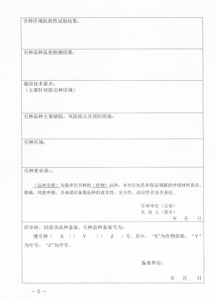 7.引種備案品種真實性、安全性、適應性責任承諾;
