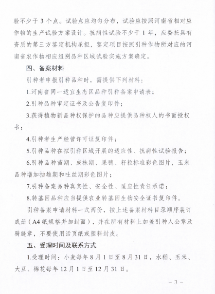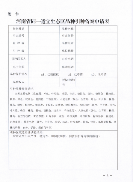2017年河南省同一適宜生態區主要農作物品種引種備案提交材料撰寫要求