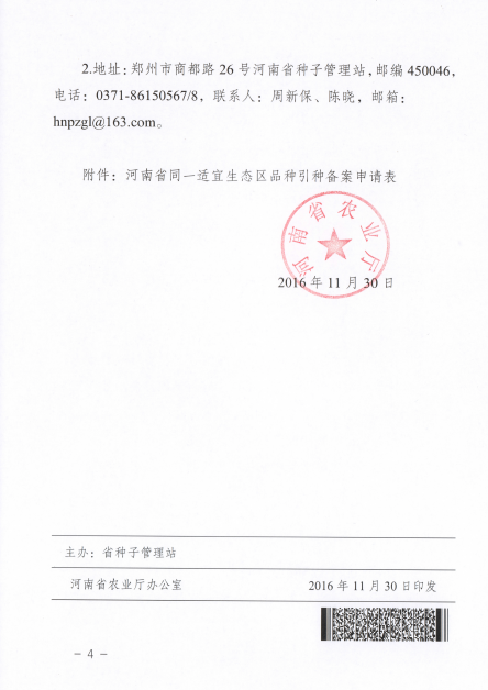 聯系單位:河南省種子管理站品種管理科